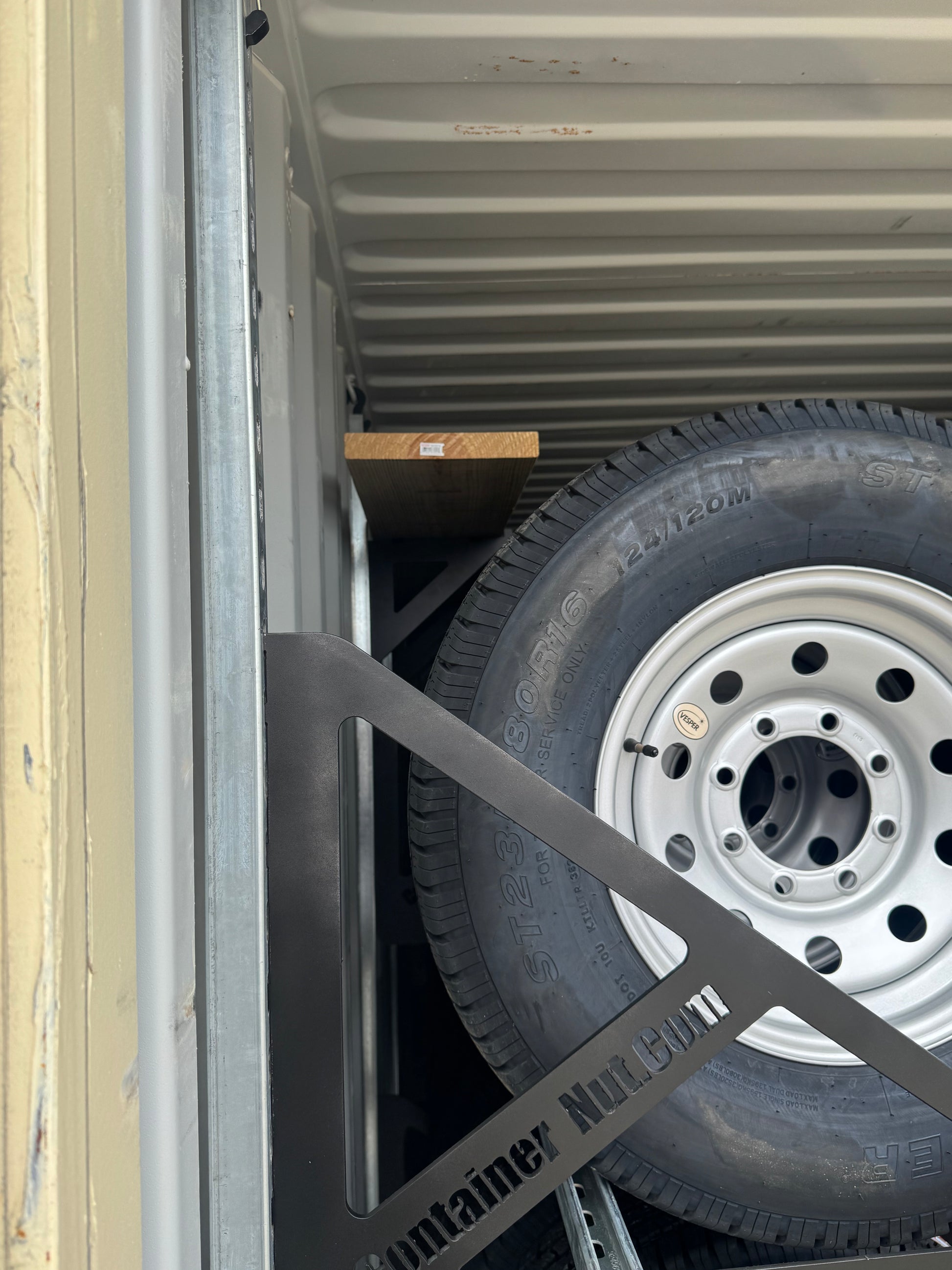 The EZY Tire Bracket is designed for effortless tire storage inside shipping containers using Unistrut (not included). Manufactured in the USA from high-quality steel and coated in a durable black finish, this bracket offers a reliable and efficient solution for organizing tires in storage. It comes with cotter pins to lock your bracket into your Unistrut.