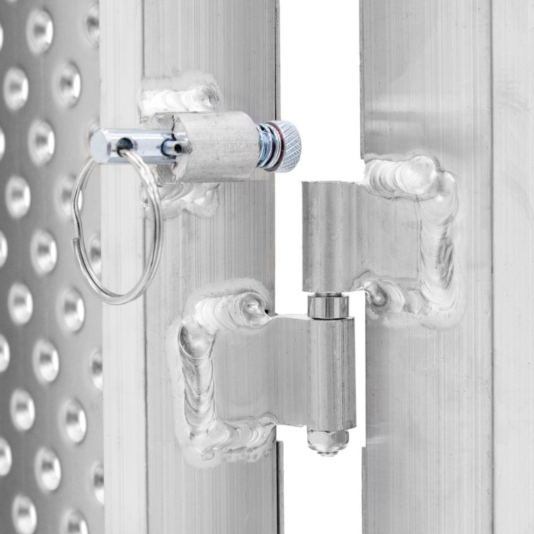Designed for durability and portability, this single-fold ramp features a high-traction punch plate surface and lightweight aluminum construction, making it perfect for safely navigating rises up to 4" in any weather. The serrated punch-plate surface provides secure grip for dollies, carts, or shoes, ensuring stability while loading or unloading. Fold it in half for easy transport or separate it into two sections for a lighter, more manageable load.